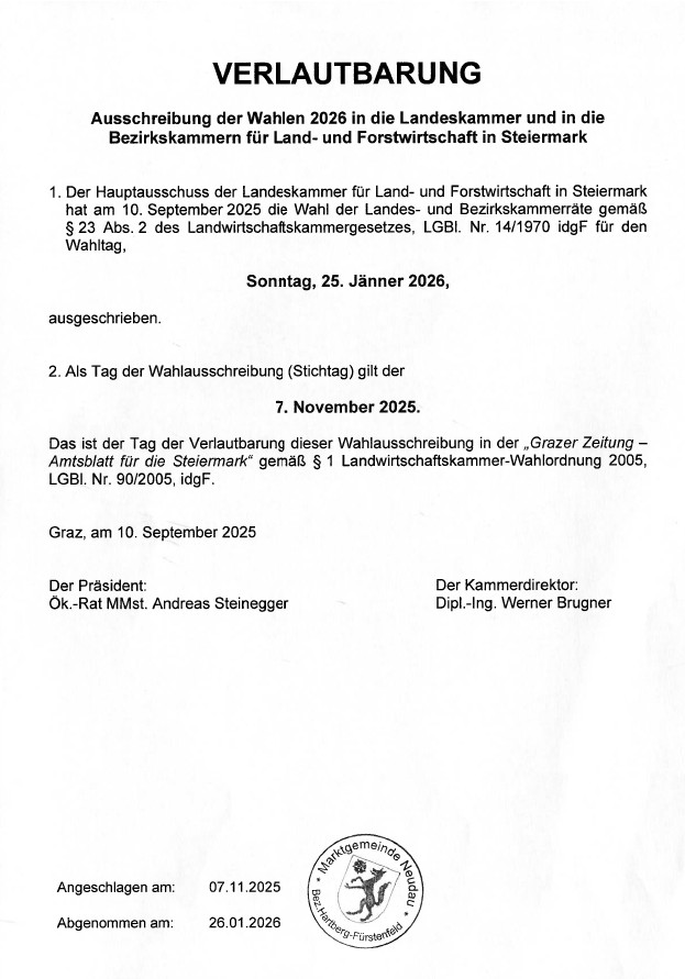 KUNDMACHUNG LANDWIRTSCHAFTSKAMMER